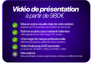 Dans une économie où l'attention coûte cher, je vous propose d'accrocher directement votre audience grâce à une vidéo percutante, claire et mémorable, qui capte dès les premières secondes.